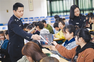4月29日,市公安局琅琊分局的公安干警在滁州学院南校区为大学生们发放扫黑除恶宣传单。当日,公安干警结合大学生的实际情况开展了扫黑除恶专题讲座,并对容易发生在校园内的金融诈骗等违法犯罪行为进行剖析,增强学生自我保护及防范的能力,营造平安和谐的校园环境。
