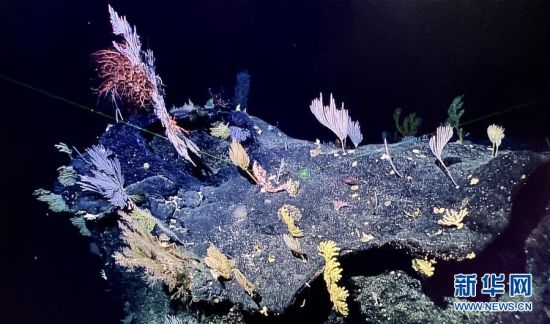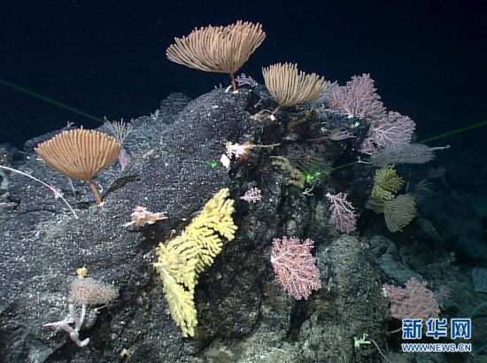 “发现”号遥控无人潜水器拍摄到的“海底花园”(5月28日摄)。 新华社发