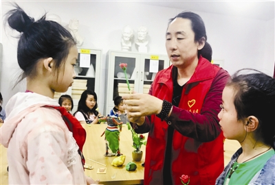 图为非遗传人向小朋友们传授面塑技艺。 通讯员陈家斌摄
