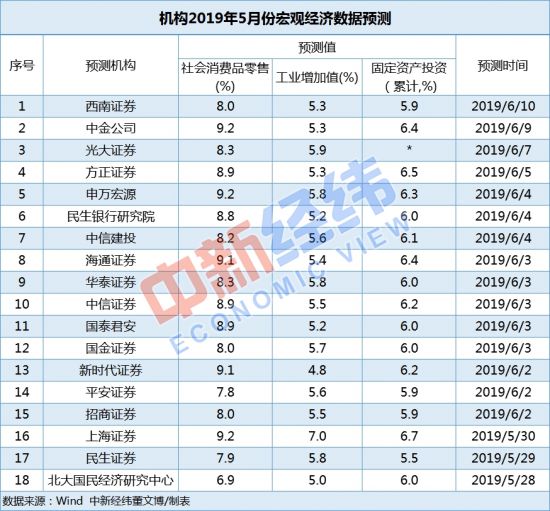 对于5月社会消费品零售,中新经纬客户端梳理发现,截至6月13日,18家机构预测的同比增速平均值为8.5%,最大值为9.2%,最小值为6.9%。