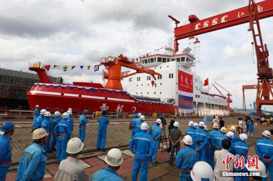 2018年9月10日,中国第一艘自主建造的极地科学考察破冰船在上海下水,并正式命名为“雪龙2”号,这标志着中国极地考察现场保障和支撑能力取得新的突破。 中新社发 蒋小威 摄