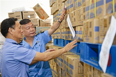 图为6月18日,执法人员正在对查获的食盐进行集中封存。 记者计成军摄