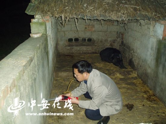 工作人员在肥东的一户人家的猪圈里进行蚊虫监测