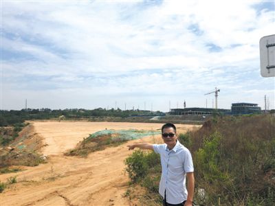 2019年6月12日,童国雄代理人向记者指示万国商汇项目所在地,仍有大片土地未开发。新京报记者 卢通 摄