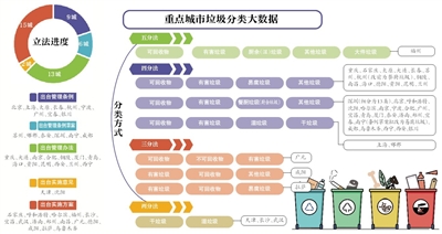 2015年至2019年,杭州、银川、广州、宜春、太原、长春相继出台生活垃圾分类管理条例。今年6月,杭州修订管理条例,加大了对违法行为的处罚力度。《宁波市生活垃圾分类管理条例》5月底已审议通过,将于10月1日起实施。