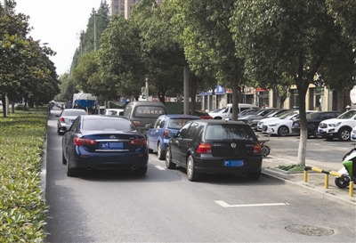 昨日下午,记者来到了长青路与全椒路交口附近,发现该路口两侧的非机动车道上分别施划了5个停车位,导致非机动车道“缩水”近一半。记者现场观察发现,这里的人流量和车流量都不小,机动车从路口进出后,该处已“缩水”一半的非机动车道就变得不足30公分。电瓶车或电动三轮车只能在这条“夹缝”中穿行,有的甚至直接驶入快车道,很不安全。附近一市民告诉记者,“划上车位,停车是方便了,但挤占了非机动车的行驶空间,很容易造成拥堵和剐蹭,希望能有一个更好的解决办法。”