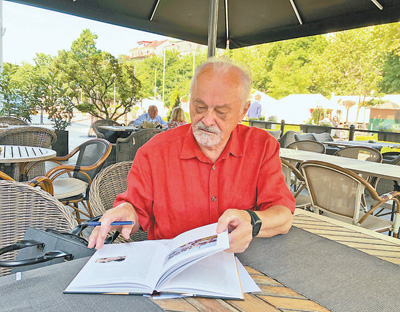 莫拉夫奇克在翻阅自己的著作。 本报记者 于 洋摄