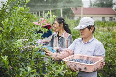 近日,来安县水口镇高煌村蓝莓种植大户付来山试种的5亩蓝莓成熟了,一颗颗蓝色的小果子簇挂枝头,清香扑鼻。