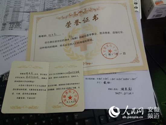 让胡亚林颇感欣慰的是,近两年来,桐城市已由包括胡来虎在内的5位贫困户在红十字会登记,有意愿生后捐献遗体器官角膜,帮助更有需要的人。