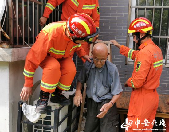 中安在线、中安新闻客户端讯 8月12日15时许,合肥市一小区里,一名80多岁老人扒在二楼外阳台,双腿发麻下不来,接到报警后合肥市消防救援支队高新中队紧急赶赴现场救援。