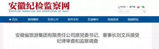 安徽省旅游集团有限责任公司原党委书记、董事长刘文兵涉嫌严重违纪违法,目前正在接受纪律审查和监察调查。