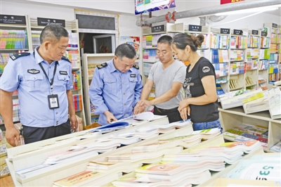 8月22日,执法人员在一家书店检查有无盗版教辅图书。