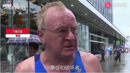 7月2日,英国大叔彼得·本特利(Peter Bently)在谈起7月1日晚极端激进分子冲击立法会事件时说:"我大半辈子都生活在香港,我爱香港,我爱中国!这些人可能觉得自己在做好事,但我觉得他们中大多数人只是暴徒和破坏者,就是来找警察茬儿的。如果这些示威者面对的是西方国家的防暴警察,比如英国、美国、法国、德国。那些警察会使用真正的子弹,而不是橡胶子弹。"