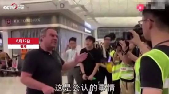 8月12日,在香港国际机场,一位一直被阻挠上机的澳大利亚大叔就呵斥示威者称,“世界公认香港属于中国,你应该去找个工作!” 他表示很反感示威者到处扔燃烧瓶和石头的行为,“我觉得你们应该好好感谢香港警察,他们这种处理方式已经很克制了”。