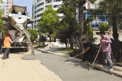近日,南谯区银花西区小区,施工人员正对道路进行重新浇筑。今年,该区投入1.65亿元实施10个老旧小区整治民生工程,主要包括小区道路翻建、雨污管道分流改造、停车位改造、环卫设施改造、屋面整修、绿化提升、小区文明创建配套、技防设施改造和消防安全提升等,直接惠及居民4043户。
