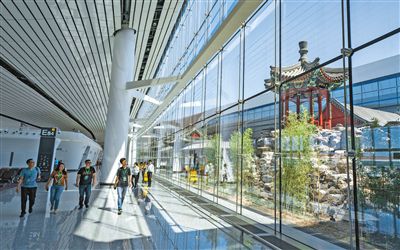 位于航站楼内的中式庭院。