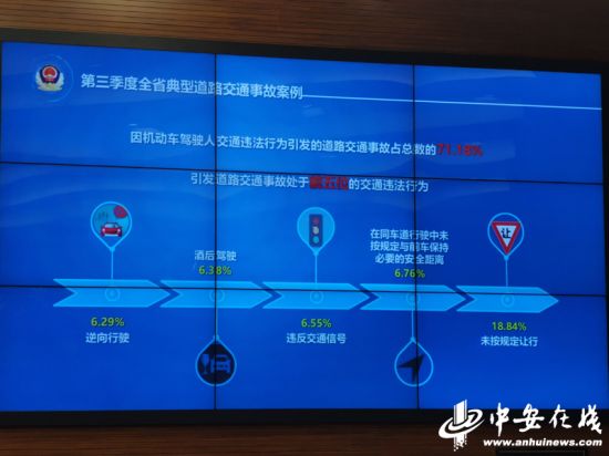 据统计,今年第三季度,因机动车驾驶人交通违法行为引发的道路交通事故占比达68.47%。引发道路交通事故排名前5位的交通违法行为是:“未按规定让行”、“在同车道行驶中未按规定与前车保持必要的安全距离”、“违反交通信号”、“酒后驾驶”、“逆向行驶”,引发的道路交通事故起数分别占比18.84%、6.76%、6.55%、6.38%、6.29%。(皖公宣 记者 吴洋)