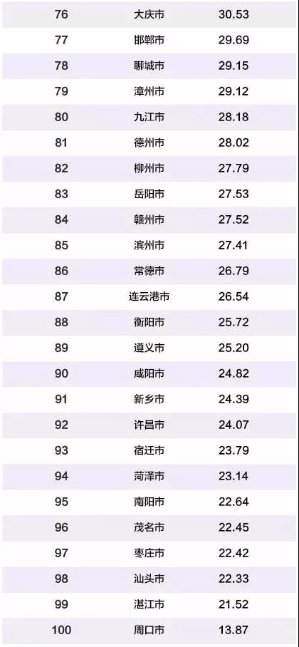 尽管此次上榜的百强城市GDP占全国总量的73.87%,占比同去年(75.22%)相比有所下降,但百强城市依然是中国经济的主战场。当前,我国经济下行压力加大,其重要原因之一是百强城市出现下滑,未来提升百强城市的经济实力是振兴中国经济的核心发力点。