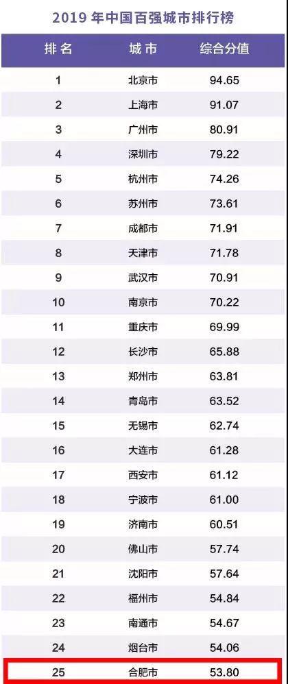 9月23日,华顿经济研究院在上海发布“2019年中国百强城市排行榜”。根据排行榜,北京、上海、广州和深圳稳居前四,综合实力最强,其次是杭州、苏州、成都、天津、武汉和南京。安徽两个城市上榜,分别是合肥市,第25位;芜湖市,第65位。