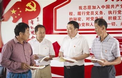 日前,来安县独山镇白露村党总支部书记,将《习近平新时代中国特色社会主义思想学习纲要》《党章》等学习书籍发放给该村部分党小组组长,并督促各党小组长结合“三会一课”、党日活动等,带领广大党员开展好“不忘初心、牢记使命”主题教育,切实将主题教育成效转化为推动工作动力,多为群众解决实际困难。
