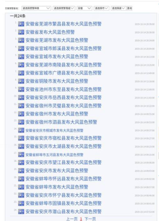 10月14日20:30,安徽省气象台发布大风蓝色预警:24小时内,江淮之间南部和沿江江南部分地区平均风力可达4级左右,阵风7-8级,局部地区8级以上。请注意防范!截至昨晚10点30分,我省有23个县市发布了大风预警信号。