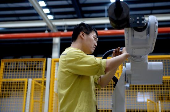 在芜湖机器人产业园,工作人员在预装埃夫特六关节机器人零部件(10月21日摄)。新华社发(黄博涵 摄)