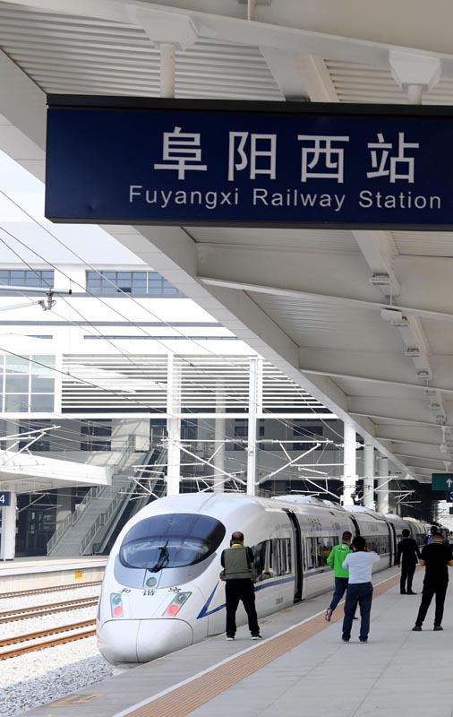 10月24日,一辆试运行列车停靠在商合杭高铁阜阳西站。新华社记者 刘军喜 摄