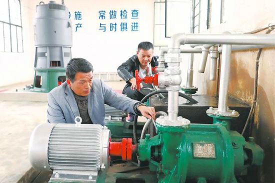 11月12日,长丰县孔圩电灌站,工作人员正在检查设备运行情况,确保电机正常运转。记者 范柏文/摄