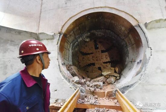 据巢湖发布微信消息 11月10日傍晚,随着掘进顶管机的成功破石而出,全长780米的巢湖首条湖底隧道顺利贯通!