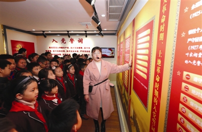 清流小学开展“红领巾心向党”活动 2019-11-22 08:41 滁州网 李晓村 扫描到手持设备 字号: 滁州网讯 11月19日上午,琅琊区清流小学四年级三班的50多名少先队员走进三岔路社区党章教育馆,开展“红领巾心向党”少先队主题队日活动,少先队员们重温中国共产党光辉历程,感受革命先辈们的奋斗历程,体会祖国在党领导下取得的巨大成就。 记者李晓村摄 责任编辑:王克 复制网址 打印 收藏 关于我们 | 联系我们 | 加入我们 | 版权声明 | 手机访问 | 网站地图 | 留言反馈 | 我要投稿 中共滁州市委宣传部主办 滁州日报社承办 Copyright?2009-2010 Chuzhou.cn. All Rights Reserved 滁州日报社 版权所有 皖网宣备3412015001号 皖ICP备11004325号-1 热线电话:0550-3022685