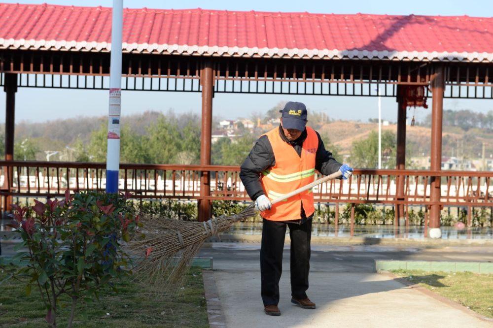 11月22日,曹畈中心村的村民志愿者在清扫马路。