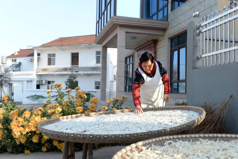11月22日,望江县太慈镇曹畈中心村村民余爱娥在晾晒萝卜干。