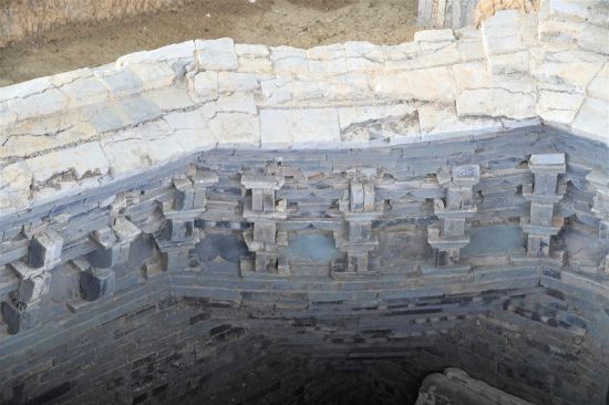除了有八边形墓葬,正在开展考古工作的M14墓葬也很特别。与其他两座墓葬的顶部结构不同,这座墓葬是平顶结构,非常的耐人寻味。张义中介绍,本着“发掘、保护、展示”三位一体的发掘理念,在未确定保护和展示思路之前,尚未对这座墓葬进行发掘。但通过内窥镜深入墓室内探查后发现,墓室内同样有仿木结构的斗拱装饰,也有两具棺木。