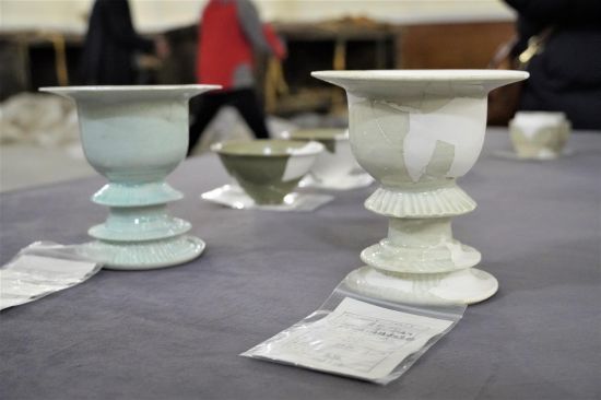 墓葬中还出土了金背木梳、银背木梳、缠枝花卉纹金镯、金钗、金簪、金耳坠、亚字形鎏金铜镜等金银器,做工细致,反映了墓主人精致富裕的生活。多件来自不同窑口的瓷器,包括景德镇湖田窑影青瓷渣斗、湖田窑镶银扣六曲影青瓷碗、镶银扣耀州窑青瓷碗等等,色泽温润,保存完好,更是引起了现场专家的一致赞叹。张义中介绍,宋人墓葬中一般随葬生前喜爱或珍贵的器物。宋代金银在老百姓生活中其实较为常见,这些精美的瓷器在当年应该更为珍贵。安徽自古以来是南北文化交汇融合的“前沿阵地”,这些来自我国南北方不同窑口的瓷器也体现了当时南北方经济文化交流的频繁。