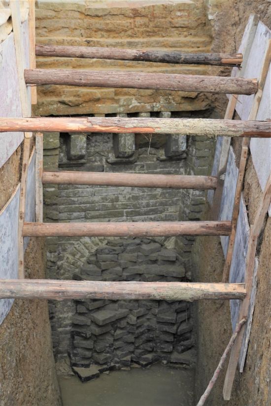 其北侧的M12是此次发掘中已经探明规模最大的墓葬,营造也更为精致,被现场专家戏称为“超级豪宅”。同样为八边形的形制,墓室更为“宽敞”,近似正方形的墓室底部边长达到了5米左右。墓室内不仅有精致的三层斗拱,还精心建造了仿木结构的墓门和镂空花窗,令人叹为观止。张义中介绍,宋朝在经济、手工业和科学技术方面都有发展,因此宋代的建筑构造与营造技术也达到了很高的水平。目前国内现存的宋代建筑已经非常少见,这座墓葬的形制及结构为研究宋代建筑提供了很好的实物资料。