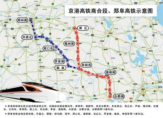 高铁线也是扶贫线。京港高铁商合段、郑阜高铁沿线城市密集,人口众多,途经大别山革命老区、沿淮行蓄洪区、江淮分水岭县(区)等国家扶贫开发重点区域。两条线开通后,阜阳形成“高铁+普铁”综合性大型铁路枢纽格局,将有效改善沿淮地区乃至皖北地区交通状况,为精准扶贫、服务“三农”提供有力支撑。