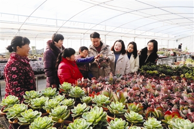 12月5日,全椒县巾帼创业示范基地石沛镇南塘花坊花卉种植大棚内,返乡创业大学生、县青年创业之星齐勇在指导妇女栽培花卉。
