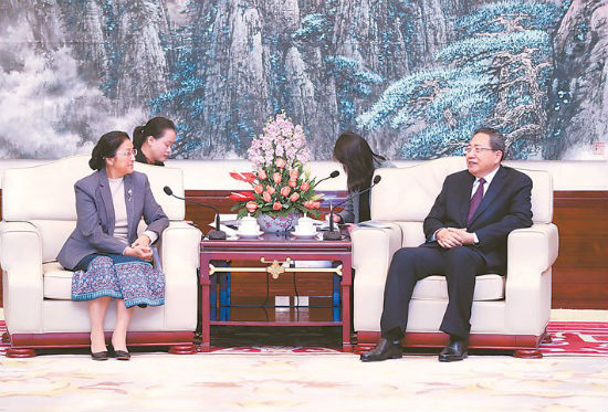12月19日下午,省委书记、省人大常委会主任李锦斌在合肥亲切会见老挝国会主席巴妮。安徽日报记者 徐国康/摄