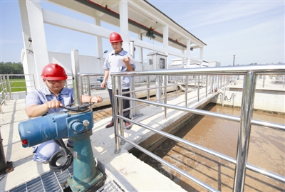 南谯区沙河镇污水处理厂技术人员正在对污水处理设备进行日常巡查。2017年以来,南谯区不断加大污水收集和处理力度,不仅净化了水质,而且有效美化了环境,成为美丽乡村的另一道风景线。