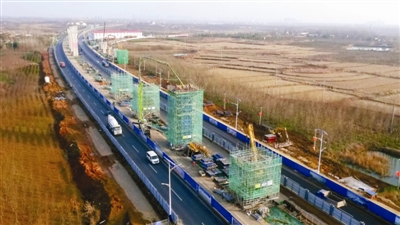 航拍滁宁城际铁路项目(滁州段)一期工程二标段施工现场。