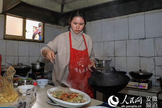 王雷妻子丁凤正在为上岛的客人准备午餐。张俊 摄