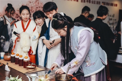当天上午9时许,“礼乐国韵·锦绣华章”文化研学暨2020新年会在市文化馆拉开帷幕。随后,舞台表演、体验展示、有奖问答、游戏互动等一场场丰富多彩的活动轮番上演,引得现场观众发出阵阵喝彩。据了解,活动期间,参与人员及志愿者对活动现场进行了精心布置和实景搭建,安排了手作区、舞台区、集市区、食品区和娱乐区等五大活动区域,设置了愿陪此宴、缠花丝绕、花的物语、纸短情长、食点茶香、且试天下等六大活动环节。