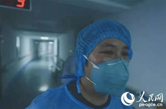 人民网记者王欲然在武汉市金银潭医院“北五病房”报道疫情。人民网记者 崔东 摄