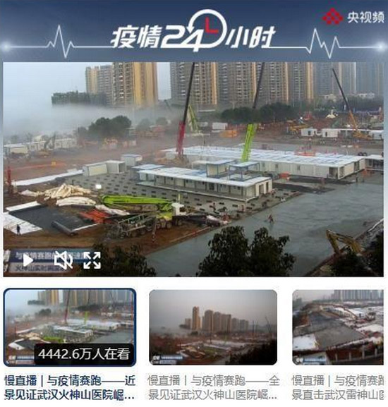 武汉火神山和雷神山两所医院加紧建设,成为关注焦点。央视新闻新媒体、人民日报人民直播联合长江日报、人民网人民视频联合中国移动,先后推出24小时不间断直播,迅速引发网友围观,观看人数不断攀升。有专家将这种传播新现象称为“围播”。