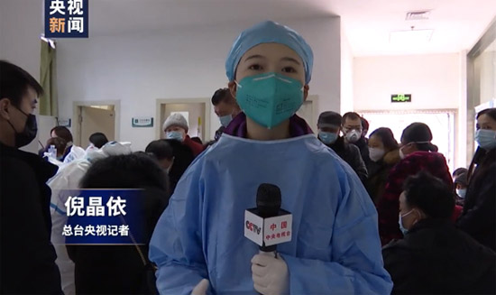 21日,央视记者倪晶依探访武汉两家发热门诊