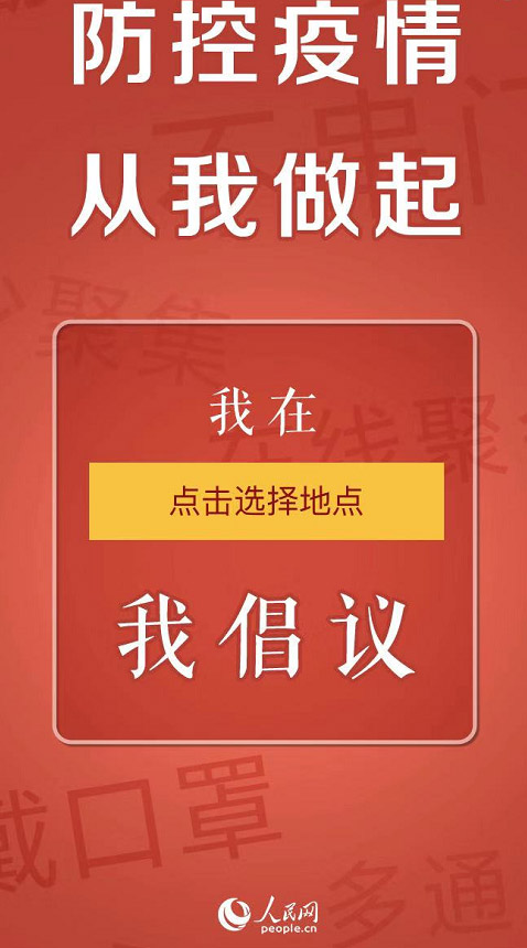 人民网制作H5《防控疫情,从我做起》,同样在线上发起倡议,点击图片即可参与,“勤洗手 多通风 戴口罩”“在线聚会云拜年 宅家为国做贡献”……通过一句句通俗易懂的话语,呼吁大家“‘罩’顾好自己”。