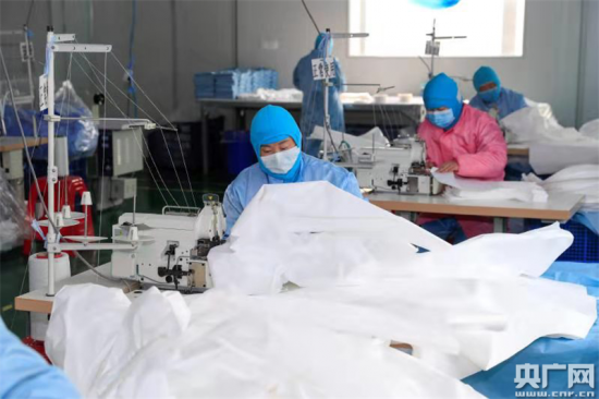 庐阳经开区企业加班加点生产防护服。(央广网发 合肥庐阳区供图)