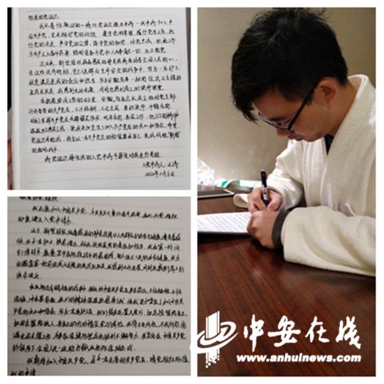 2月8日下午,在武汉协和东西湖医院,在隔离病房工作了6个小时的“90后”安庆小伙钱斌斌,刚刚从医院回到宾馆,就迫不及待地拿出纸和笔,郑重地写下了“入党申请书”。涡阳县人民医院护士卢永贞从1月23日进入隔离区,至今已经连续工作了半个月,“我们私下里很脆弱,但我们在病人面前必须坚强。”卢永贞在日记中这样写到。
