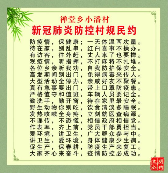 灵璧县禅堂乡小潘村新冠肺炎防控村规民约