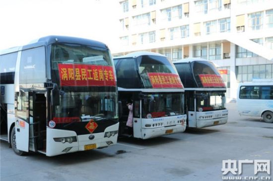 亳州市涡阳县开出农民工返岗专车(央广网发 亳州市委宣传部供图)